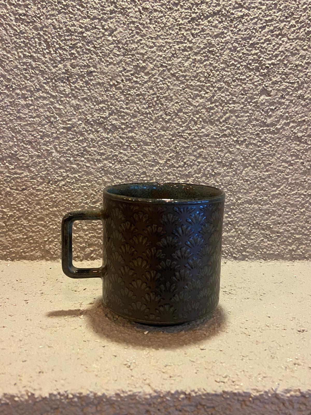 Zarif detayları ve şık yüzeyiyle öne çıkan bu seramik kupa, siyah zemin üzerine işlenmiş yaldız görünümlü desenleriyle modern ve sofistike bir stil sunar. Işığa göre değişen ton geçişleri, ürüne derinlik ve premium bir görünüm kazandırır.